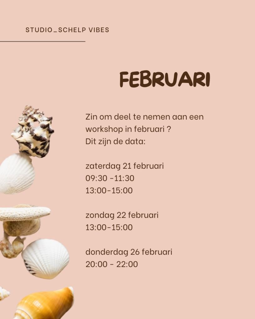 Bij het boeken van een workshop ga je akkoord met de algemene voorwaarden van Studio_schelp.