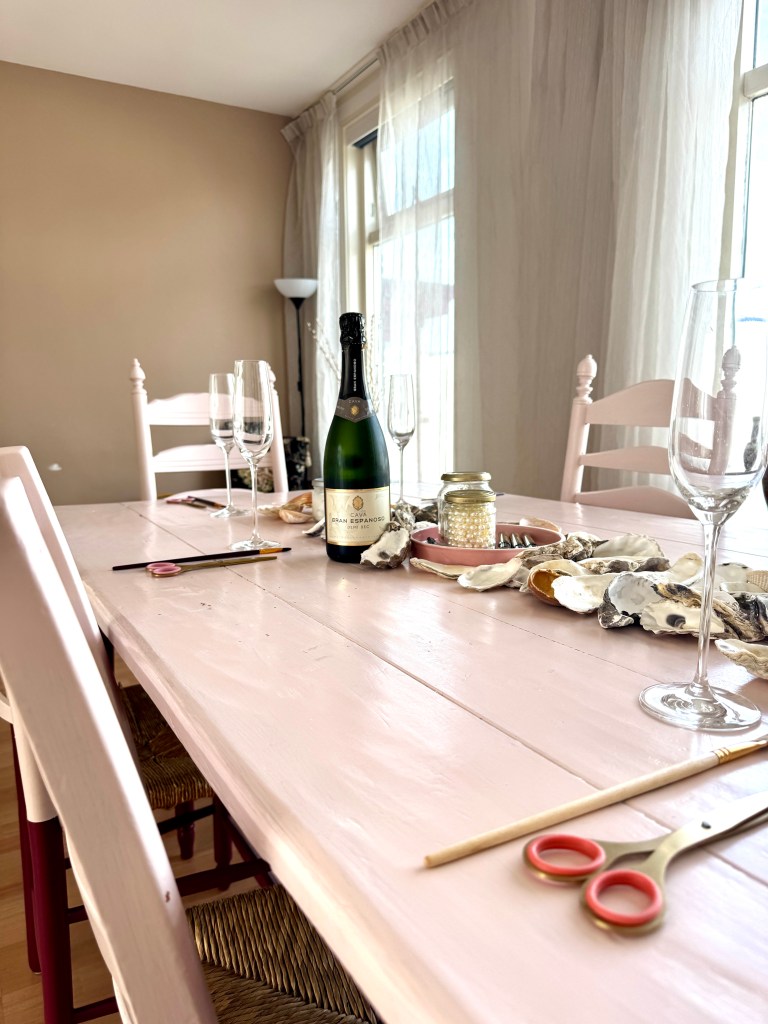 De workshop vindt plaats in het atelier van Studio_schelp in de haven van IJmuiden, een fijne lichte plek op één hoog. Na aankomst en een korte uitleg is er de ruimte om 2 uur aan de slag te gaan met de verschillende technieken om een schelp te decoreren.