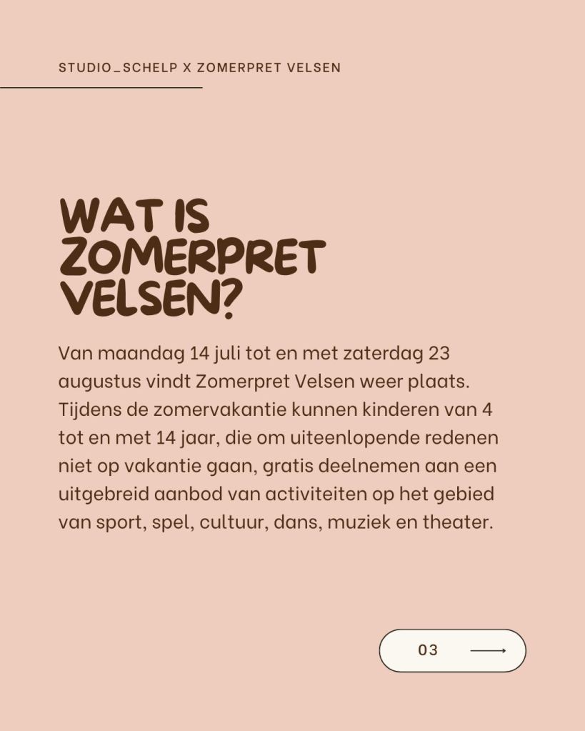 Zomerpret Velsen biedt een gevarieerd aanbod aan gratis activiteiten aan tijdens de zomervakantie in de gemeente Velsen voor kinderen van 4 tot en met 14 jaar. Studio_schelp verzorgt 3 workshops voor kinderen.