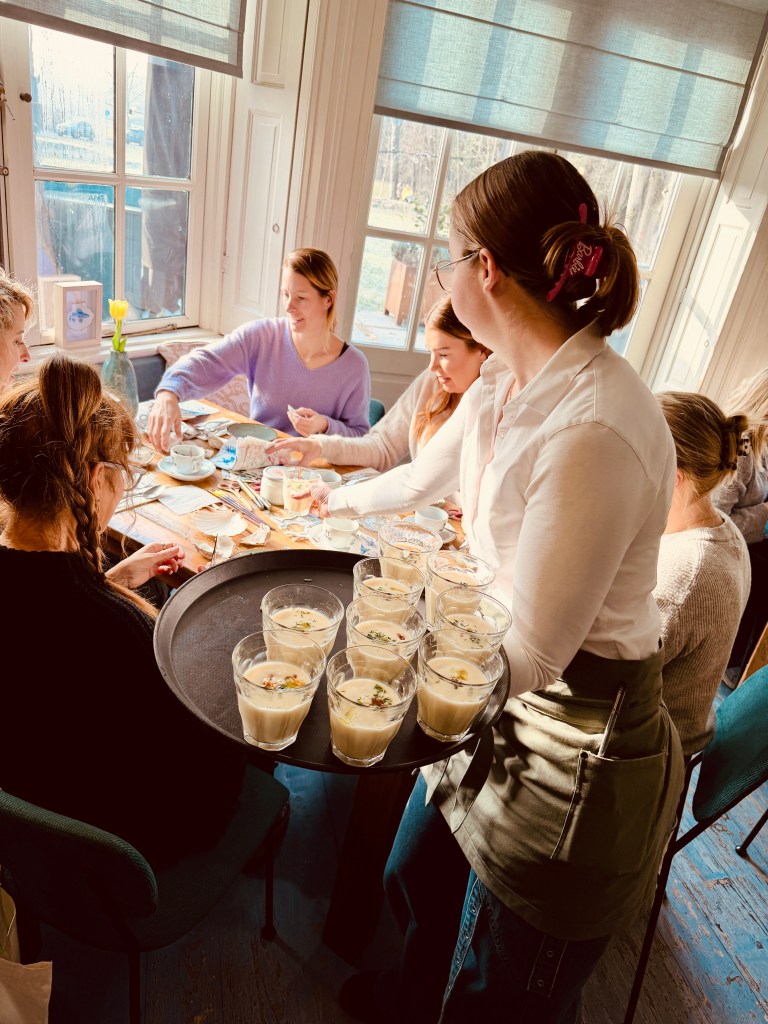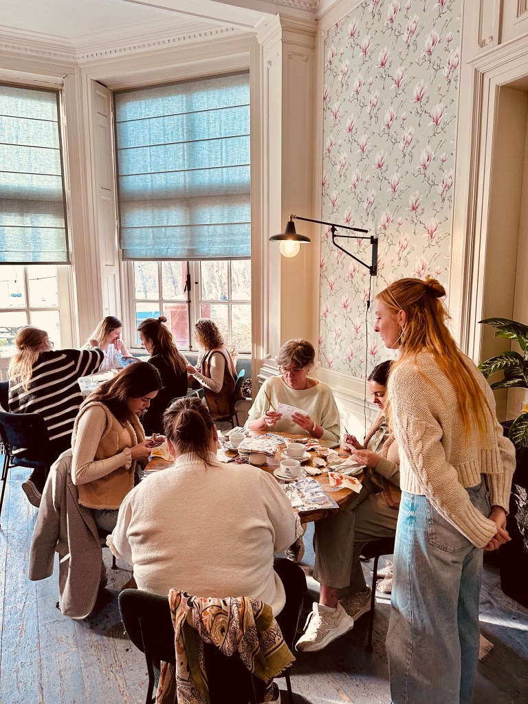 Wat deze workshop extra speciaal maakte, was het gevoel van samen genieten — niet alleen van het creatieve proces, maar ook van elkaars gezelschap en van de warme, gastvrije sfeer van De Smaeckkamer. De locatie bleek perfect gekozen; de gezellige huiskamerachtige ambiance van de brasserie zorgde ervoor dat iedereen zich op z’n gemak voelde, en de heerlijke gerechten gaven de workshop een extra feestelijk tintje.