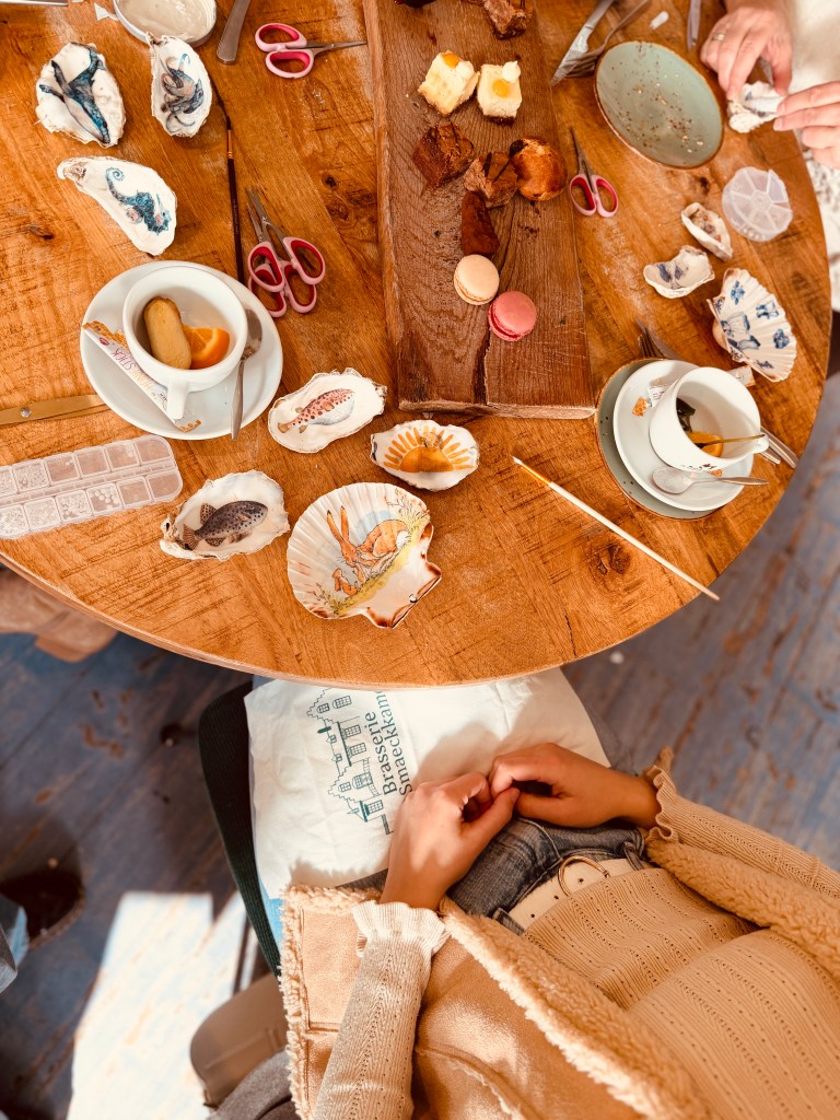 De ochtend begon met een kopje thee en een korte uitleg, waarna de deelnemers onder begeleiding aan de slag gingen met het versieren van schelpen — een activiteit waarin je niet alleen je handen liet spreken, maar ook je eigen stijl en gevoel kon laten zien. De concentratie, het gelach en de nieuwe vriendschappen die ontstonden rondom de workshoptafel maakten het tot een ervaring die verder ging dan alleen creëren. Velen vonden het verrijkend om even volledig in het moment te zijn, samen te werken en te ontdekken hoe je van een schelp een klein kunstwerk maakt dat symbool kan staan voor herinneringen, vakantiegevoel en persoonlijke verhalen.