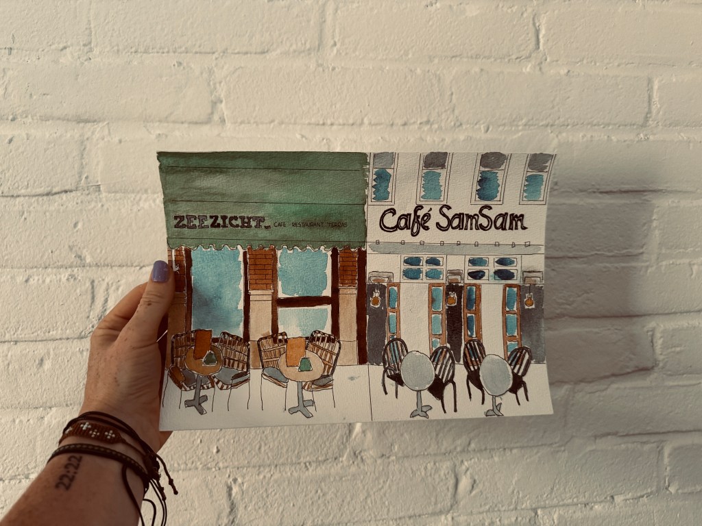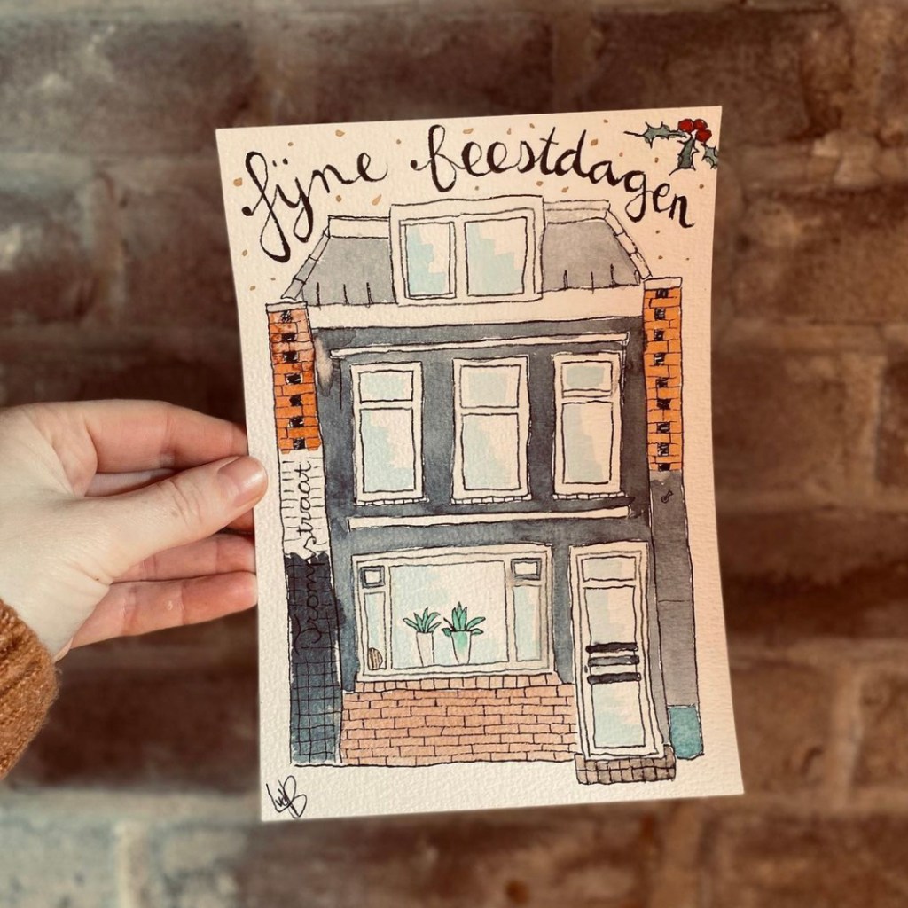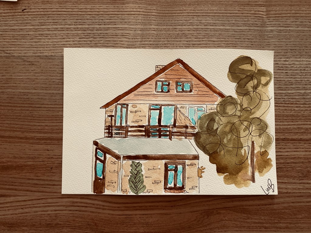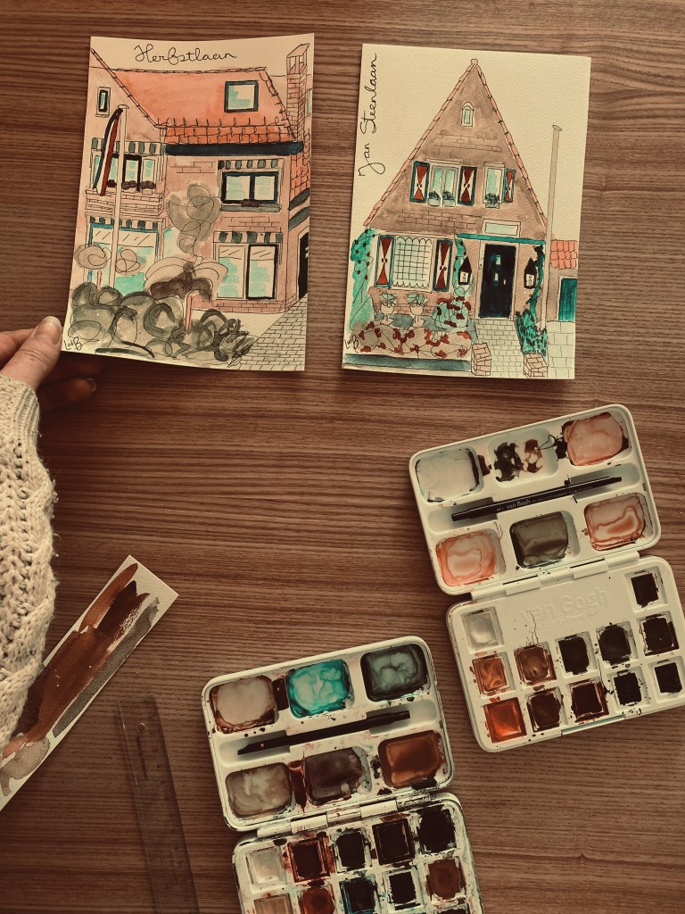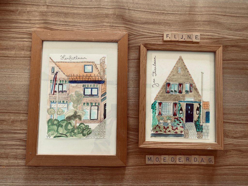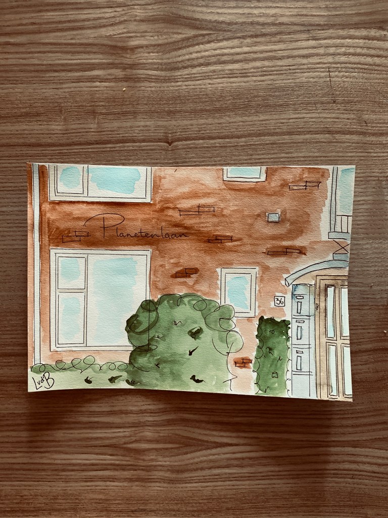 Naast het maken van kunstwerken met schelpen en het organiseren van workshops en kinderfeestjes, werkt Loes ook met aquarelverf. Onder de naam ‘Bestel een aquarel’ schildert zij huisportretjes. Een uniek cadeau bij verhuizing of jubileum.